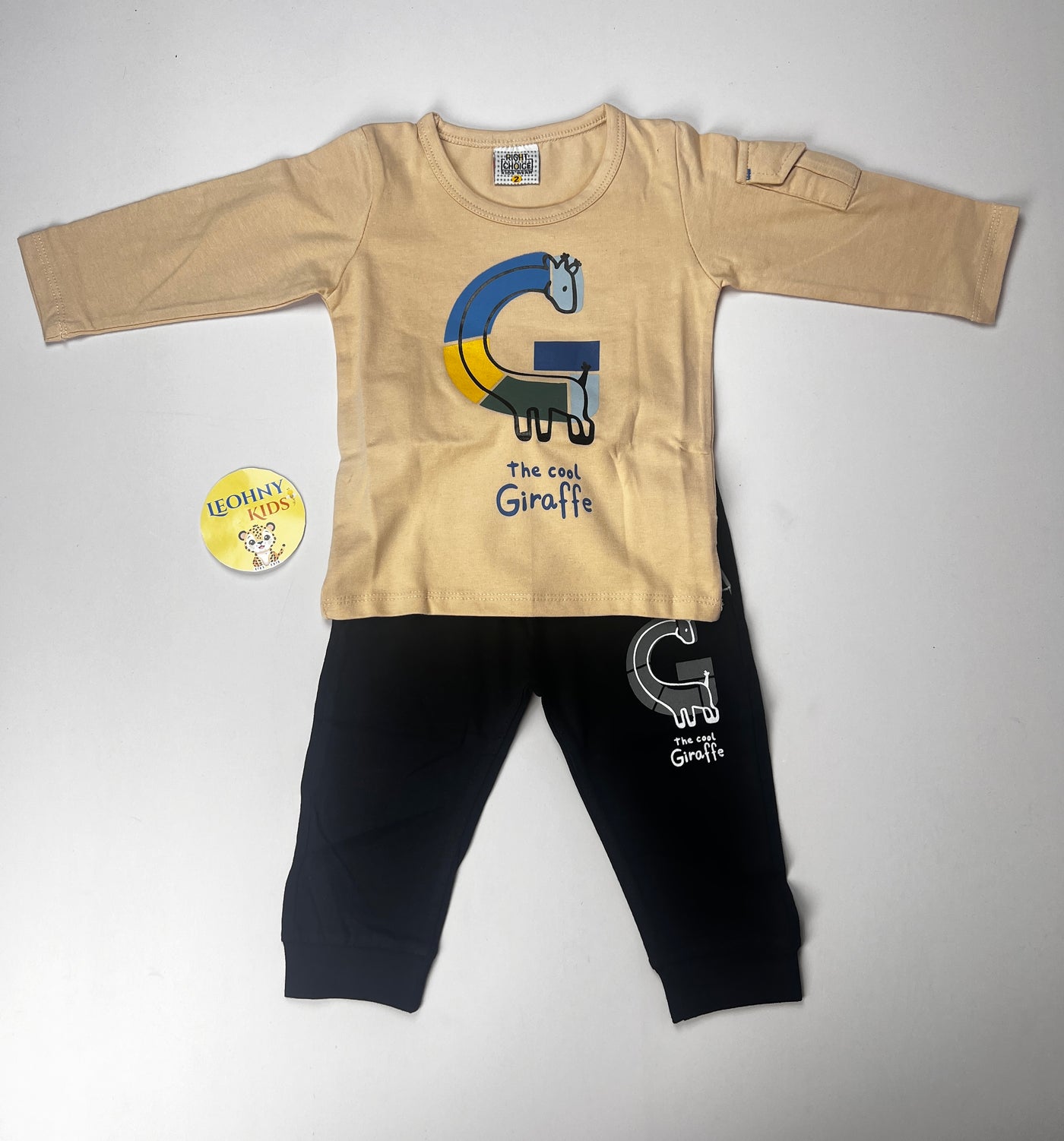 A smart and functional 2-piece outfit for boys featuring a minimalist giraffe graphic and a unique utility pocket detail. This set blends everyday comfort with a modern, clean aesthetic perfect for active little explorers.