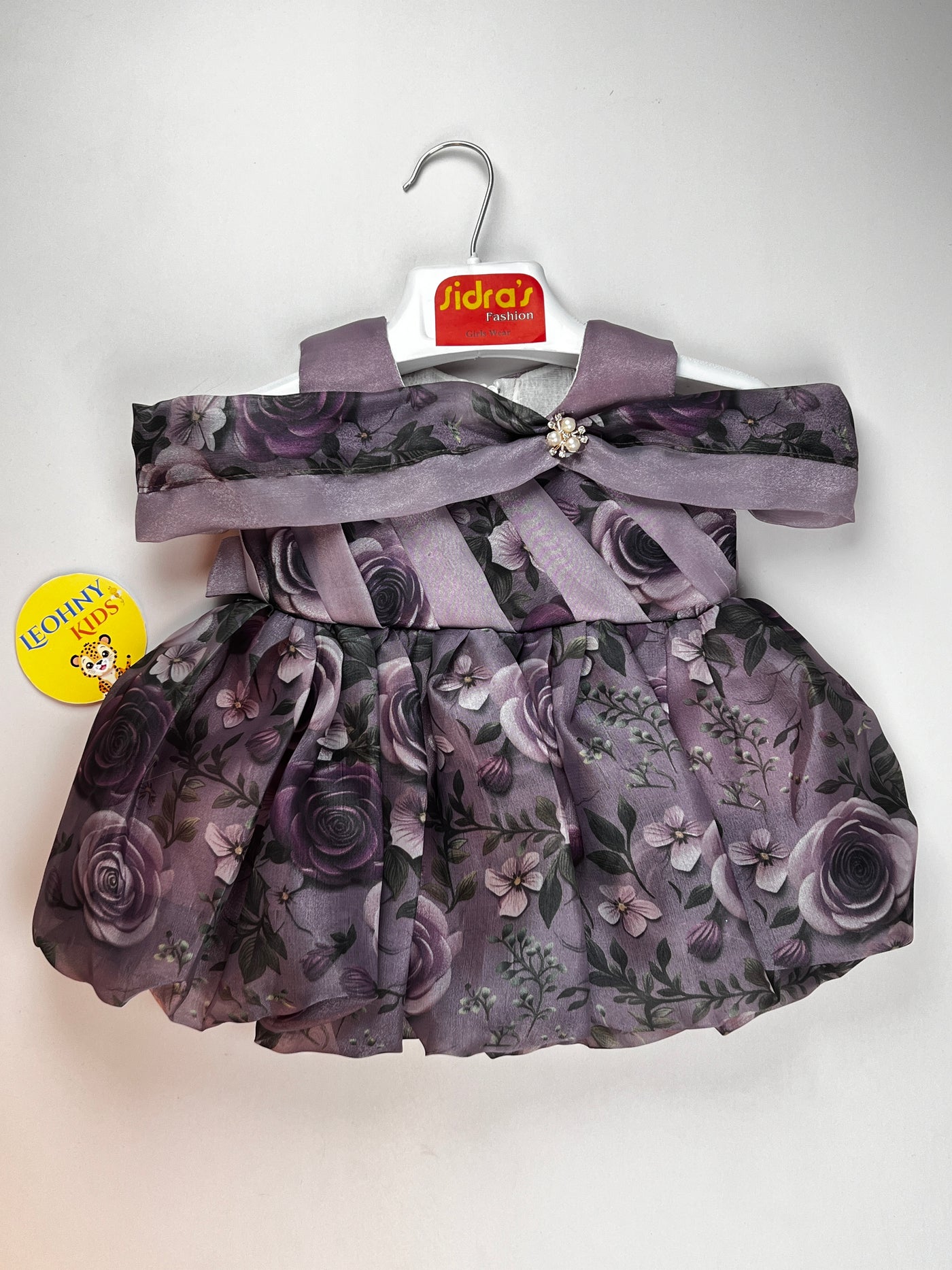 An elegant and high-fashion formal frock for girls, featuring a rich botanical print and sophisticated structural draping. This statement piece is designed for special occasions, weddings, and festive celebrations where a touch of luxury is required.