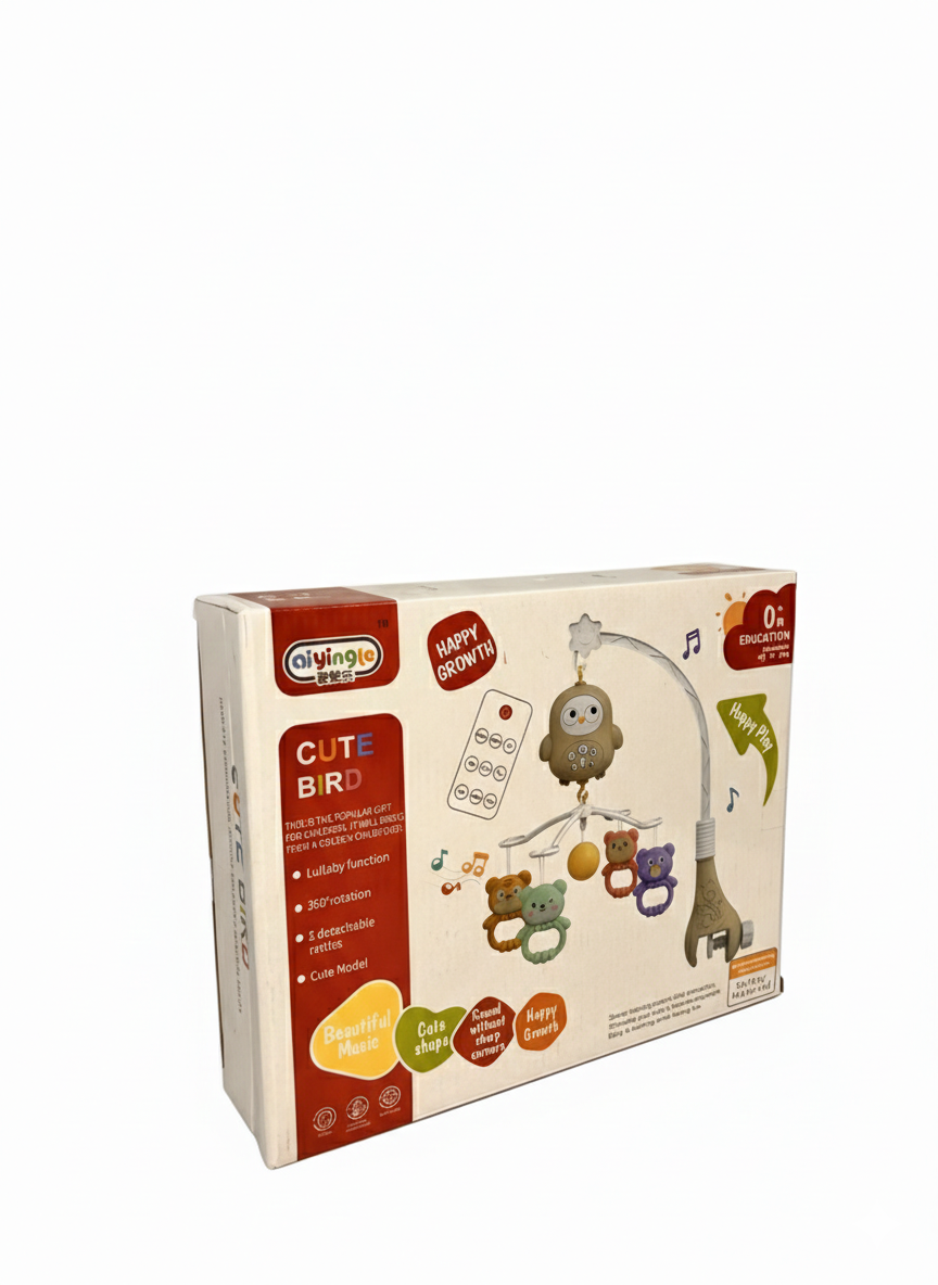 Cute Bird Baby Crib Mobile with Music & Remote Control – Rotating Hanging Rattle Toy (0+ Months)