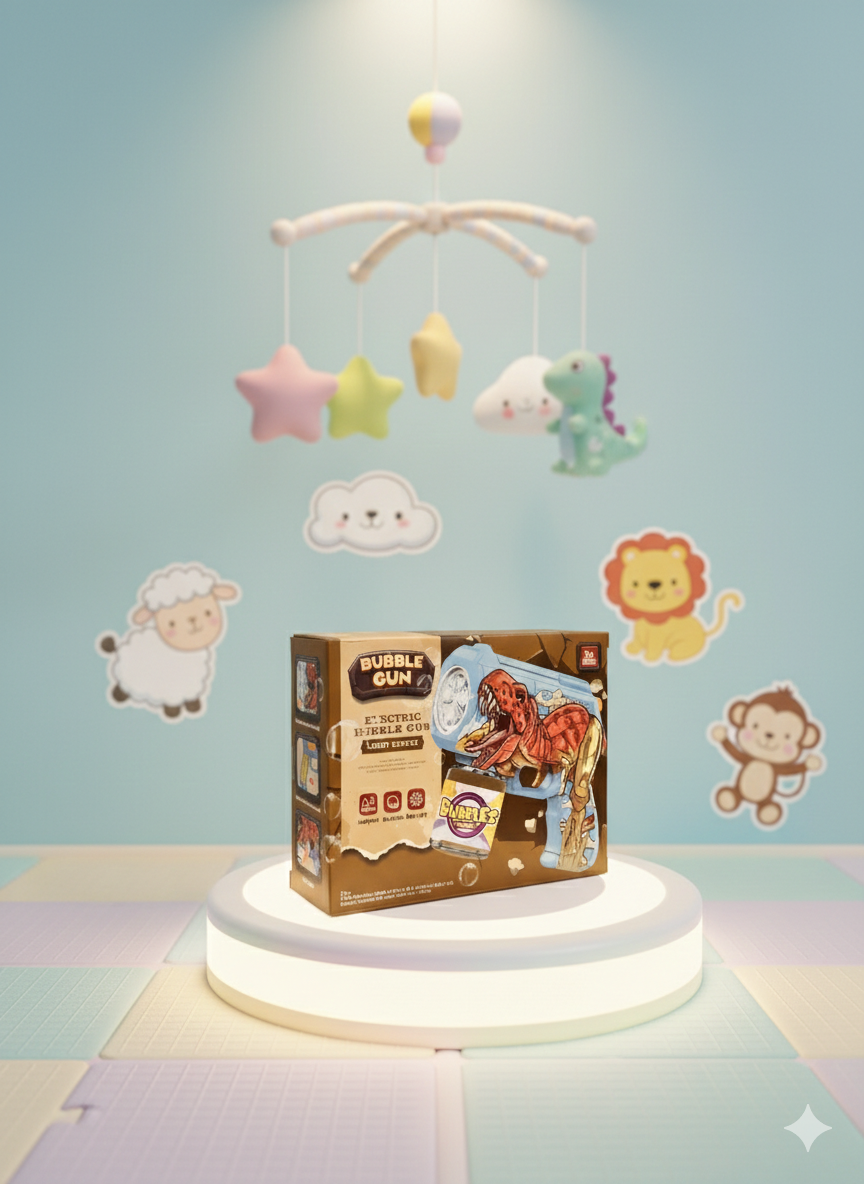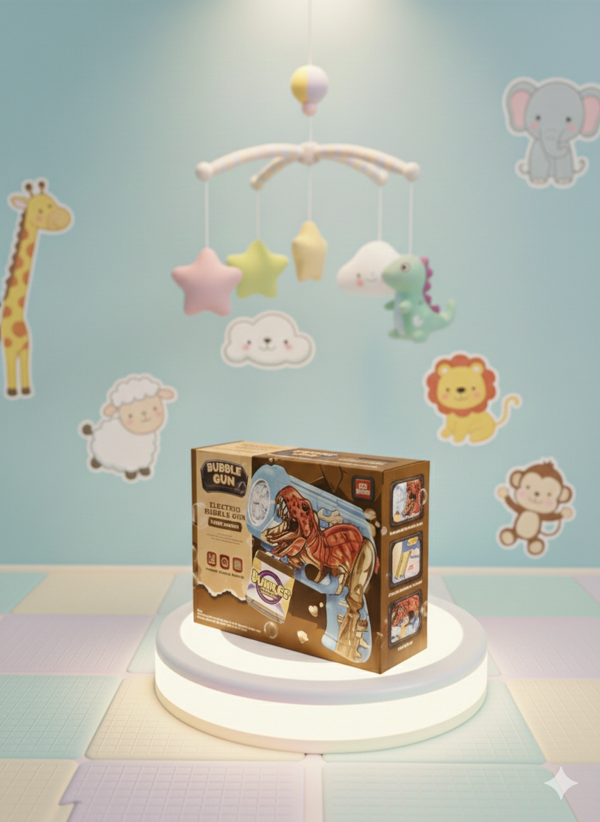 The Dinosaur Bubble Gun is a fun and exciting electric bubble blaster designed to bring endless joy to kids. Featuring a cool dinosaur design, this bubble gun produces a continuous stream of bubbles at the press of a button, making it perfect for indoor and outdoor play.
