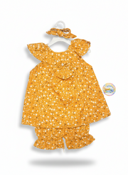 Baby Girls Floral 3 Piece Outfit Set – Top, Shorts & Matching Headband - Mustard Floral / 1-1.5 year