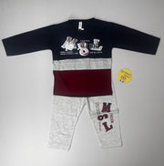 Boys 2-Piece Winter Outfit – Navy & Maroon Color Block Shirt with Grey Trouser - 1-1.5 / Blue